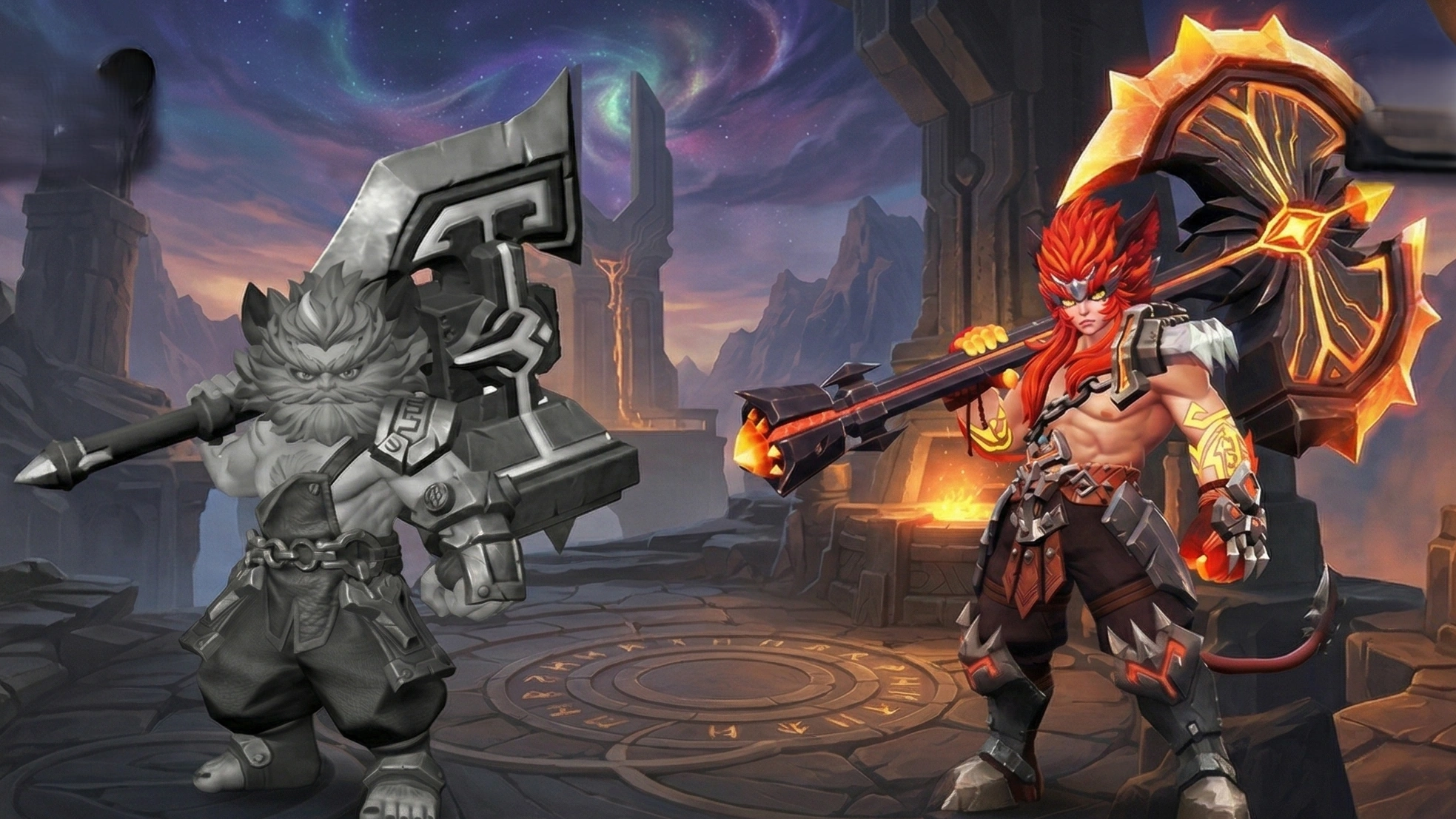Pada versi revamp, arah desainnya terasa dibuat lebih tegas. Dari bocoran dan materi promosi yang beredar, Aulus tampak dibentuk menjadi fighter late game yang lebih eksplosif. Nuansa visualnya diperkuat, efek serangannya dibuat jauh lebih mencolok, dan kesan “burning warrior” dibuat lebih dominan. Itu sebabnya revamp ini terasa bukan cuma polesan kosmetik, tetapi upaya mengubah citra Aulus supaya lebih relevan dan lebih menjual di mata pemain sekarang.